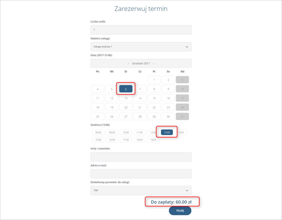 Sprawdźmy jak stworzona reguła cenowa działa z poziomu formularza rezerwacyjnego.